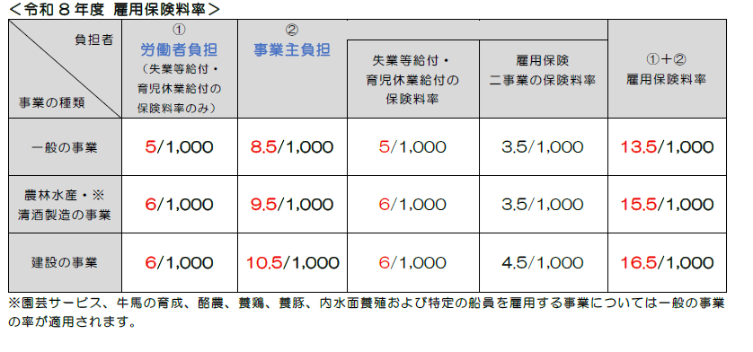 令和8年度の雇用保険料率は昨年から0.1%引下げ